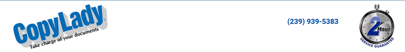 CopyLady: Proudly serving Sanibel, Captiva Island and SouthWest Florida since 2002! It's time to take charge of your documents! At CopyLady, We carry Multifunction Printers from major brands such as Epson, Kyocera, and KIP. We also service all major printer and copier brands! HP, Brother, Ricoh, Xerox, Canon, We can fix them all! Need a toner, ink or other component for an existing machine? Can't find it anywhere else? We can help you! With CopyLady, you won't just manage documents, you'll take charge of your documents! Service so fast, you'd think we popped straight out of your phone! Tired of downtime? Sick of paper jams? Tired of being stuck without a printer while your current service provider responds? Yeah, we know the feeling. That's why we have the CopyLady 2-Hour guarantee! You're on a beautiful island! You should be on the beach, toes in the sand, drink in hand, NOT waiting to get your equipment repaired! Let CopyLady keep your office running, so you can sit back, relax and enjoy life! Our team of highly trained copier technicians are always ready to help when the call comes in, You can also get quick assistance from our help desk! Do you have a question about something on your copier or printer? Need some assistance with a feature? Just give CopyLady a call, and our highly knowledgeable help desk technicians can assist you within minutes! Hey, Pass the suntan lotion please! .      The cost of toners is insane today......wait........Did you say FREE??? YES! Paying for toners for your copier or printer is so out of style! Why would you want to even do that?? We got you covered! Your CopyLady Service agreement includes toners! What's better, is thanks to our revolutionary Toner Replenishment System (TRS), You'll NEVER have to call and order toners! We'll handle it all for you! Once we see you are low on a toner, One of our technicians will bring a fresh one out to you! We carry a full selection of toners and inks in our Fort Myers warehouse, No need to wait for it to come from some other state! And yes, It's FREE!!! Take what you would have spent on toners, and go get a nice tropical drink, or an epic burger! After all, Sanibel is well known for it's unique restaraunts! For those really BIG IDEAS........You'll want a BIG PRINTER to bring them to life! Blueprints? Posters? Banners? Covering your office walls with beautiful ocean views? CopyLady has you covered with our line of high quality plotters! With sizes up to 44 inches, Let your creativity soar! Razor sharp Black & White, and Colors so real, you'd swear you moved your desk onto the beach! (Minus the sand!) Ready to spend more time on the beach and less time worrying about your copiers and printers? Call us at 239-939-5383! Don't settle for the least, Go for the best! Like what you see? Call now or hit the link below to check out our specials! Call CopyLady Today at 239-939-5383          Serving Sanibel, Captiva Island, and all of Southwest Florida.
